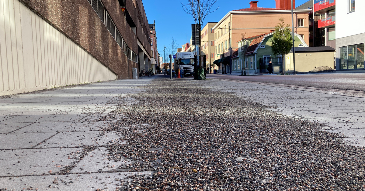 The sidewalks along Drottninggatan are scary, in places there are gravel drifts, bits of gravel of the kind that have not been swept away after last winter, for example under the City House car park. There are thick seams on the walls of the house, as well as in and around bike racks and parking spaces.